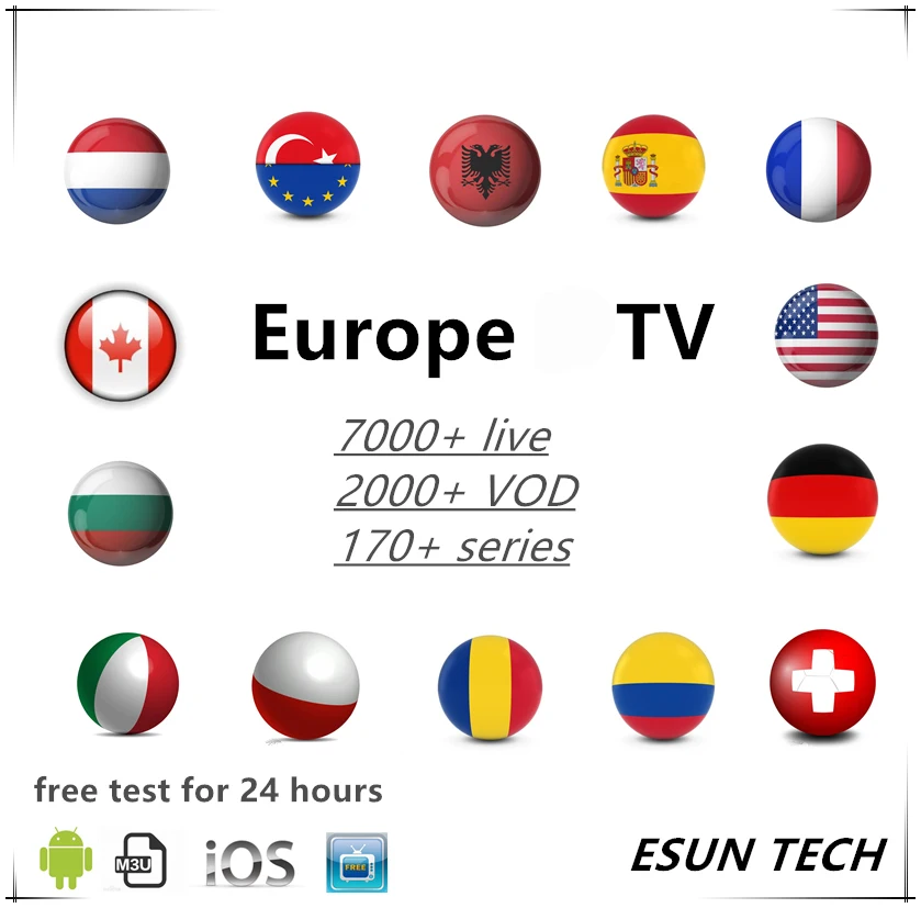 Free Shipping IPTVESUN French IPTV Arabic IPTV Dutch IPTV Android m3u player smarters ESUN premium server abonnem are attractive to buyers from around the world